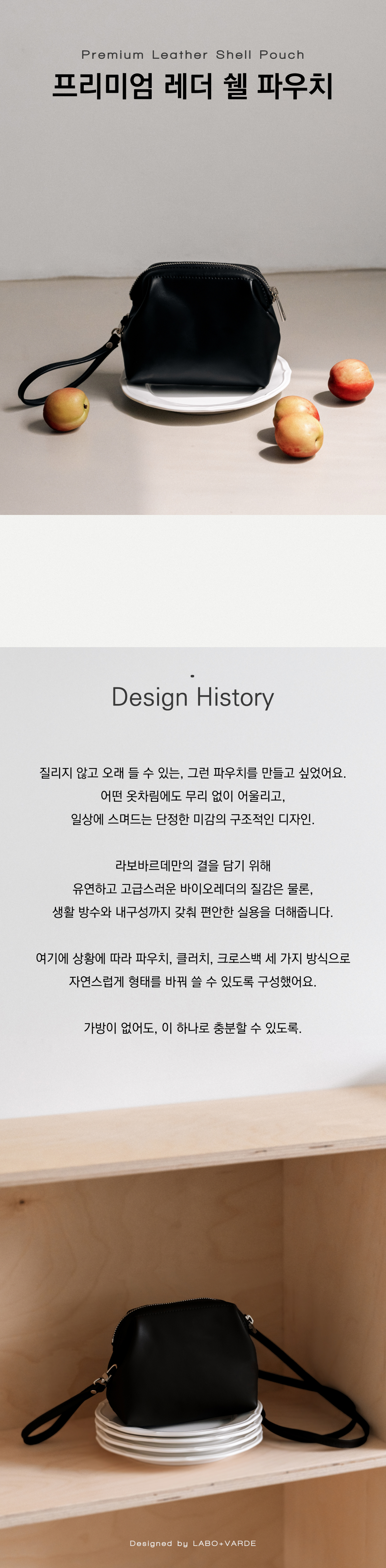 라보바르데의 첫 파우치 제품 미니파우치 , 미니백 으로도 연출 가능한 제품입니다.